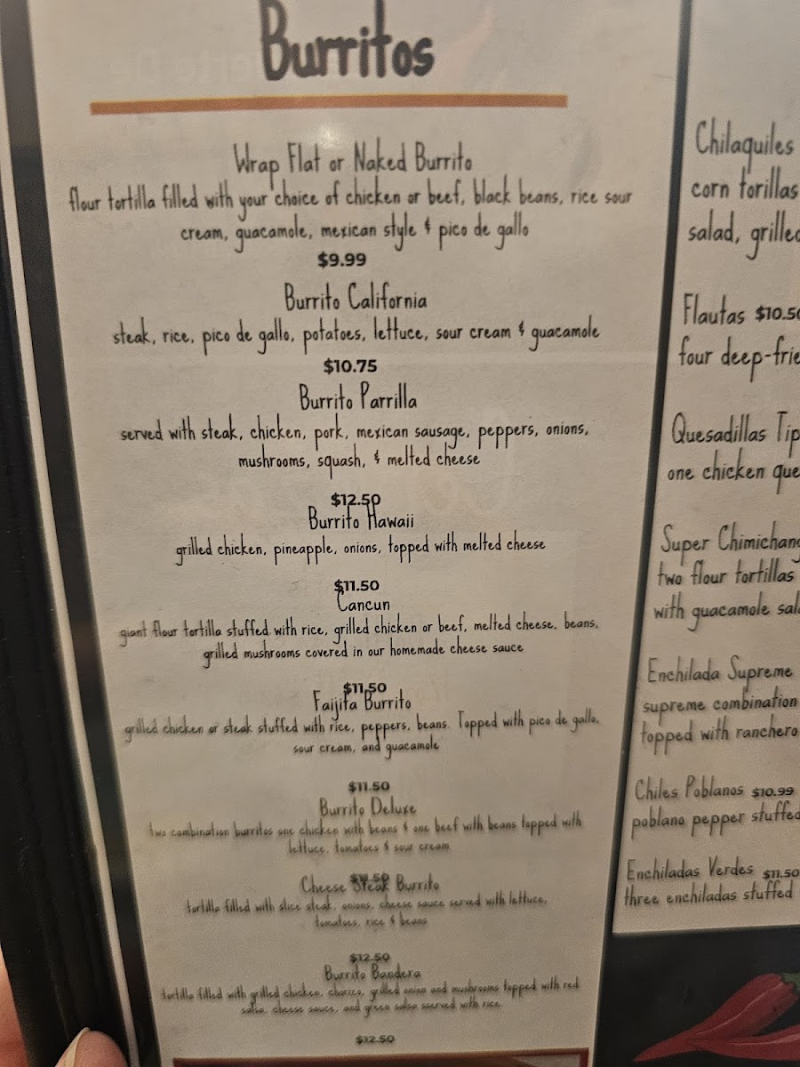 Beef, Bean Or Chicken Burrito Comes With Rice And Beans